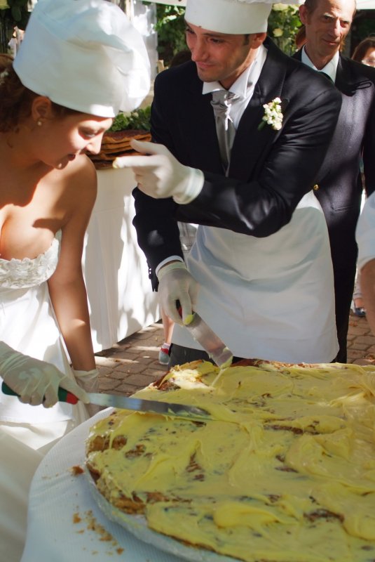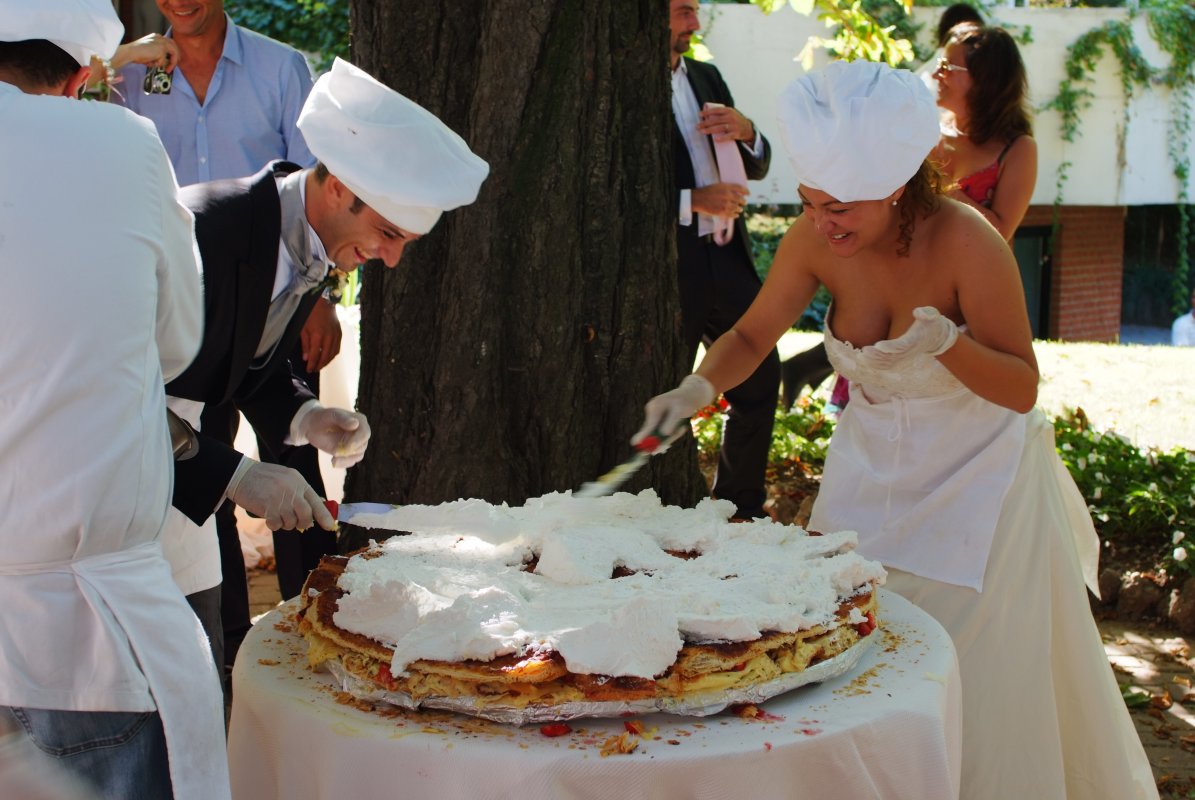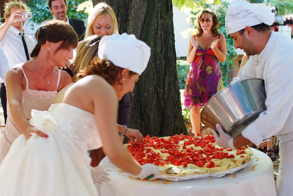 Sarà un momento di divertimento per tutti, sposi e invitati parteciparenno alla costruzione di una torta gigantesca, fresca e ricca di gusto.