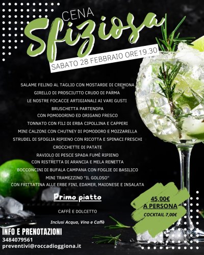 Sabato 28 febbraio, a partire dalle ore 19.30, la cucina presenta un menu ricco e variegato, pensato per offrire una selezione di sapori equilibrati e preparazioni realizzate con ingredienti scelti.